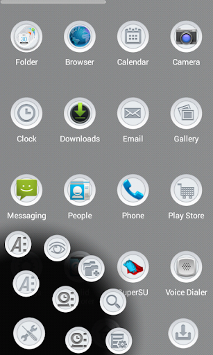 - 53 3d icons, covers the main apps of the phone such as dial, SMS, email and so on