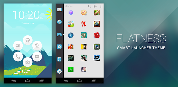 Everything flat, with some subtle highlights and shadows. Special note: I hid the title of apps in the app drawer to keep everything as clean and simple as possible.